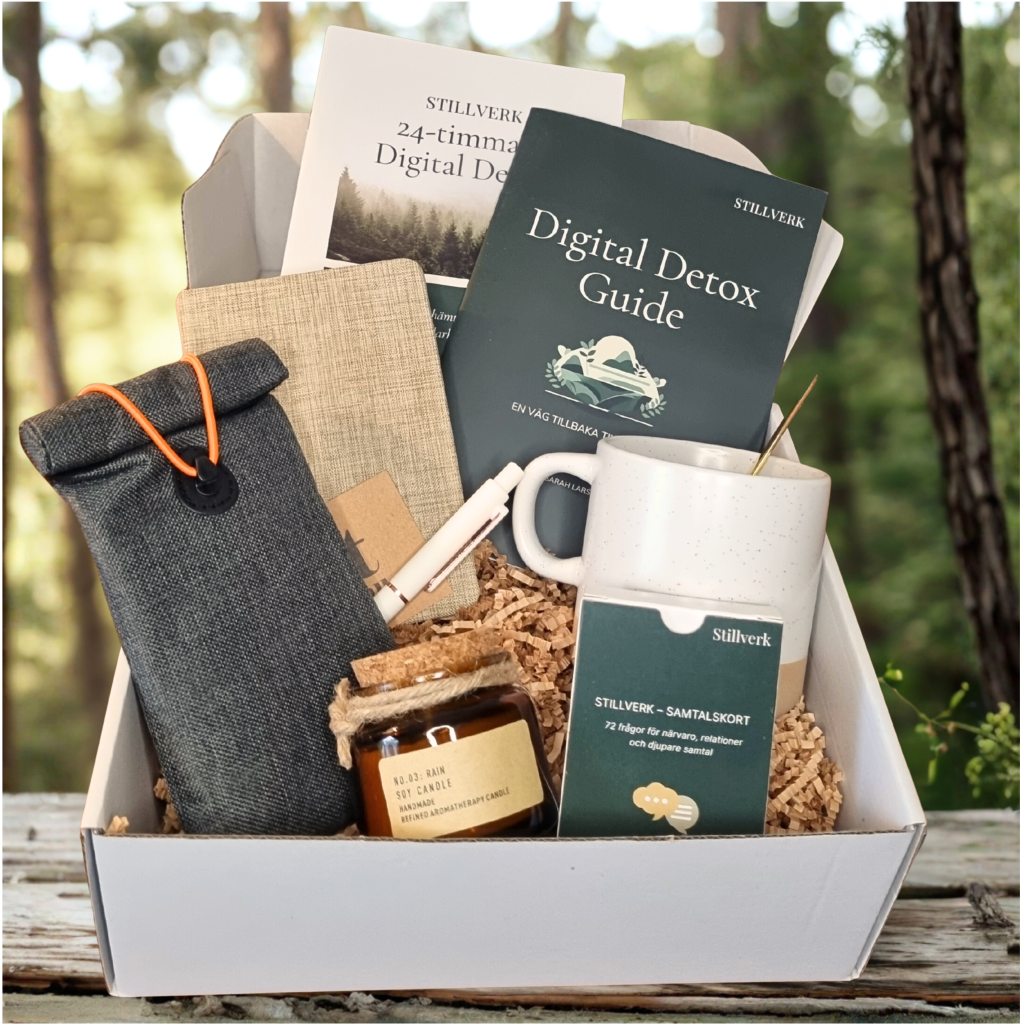 I en värld full av notiser, flöden och ständig uppkoppling kan det kännas svårt att hitta tid för återhämtning. Med Stillverkets Retreat blir det enkelt. Allt du behöver för ett skärmfritt dygn – från inspiration och vägledning till praktiska verktyg – finns samlat i en vacker box.